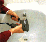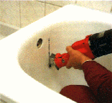 Bohrungen für Ab- und Überlaufgarnitur werden angebracht. Der Einsatz wird aus der alten Wanne wieder heraus genommen.
