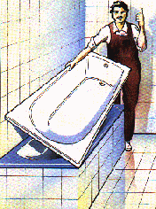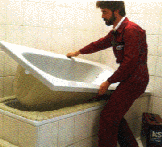 Passprobe des Wanneneinsatzes in der alten Wanne.