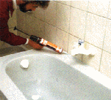 Die Armaturen werden montiert und der Wannenrand mit dauerelastischem Silikon ringsum versiegelt.